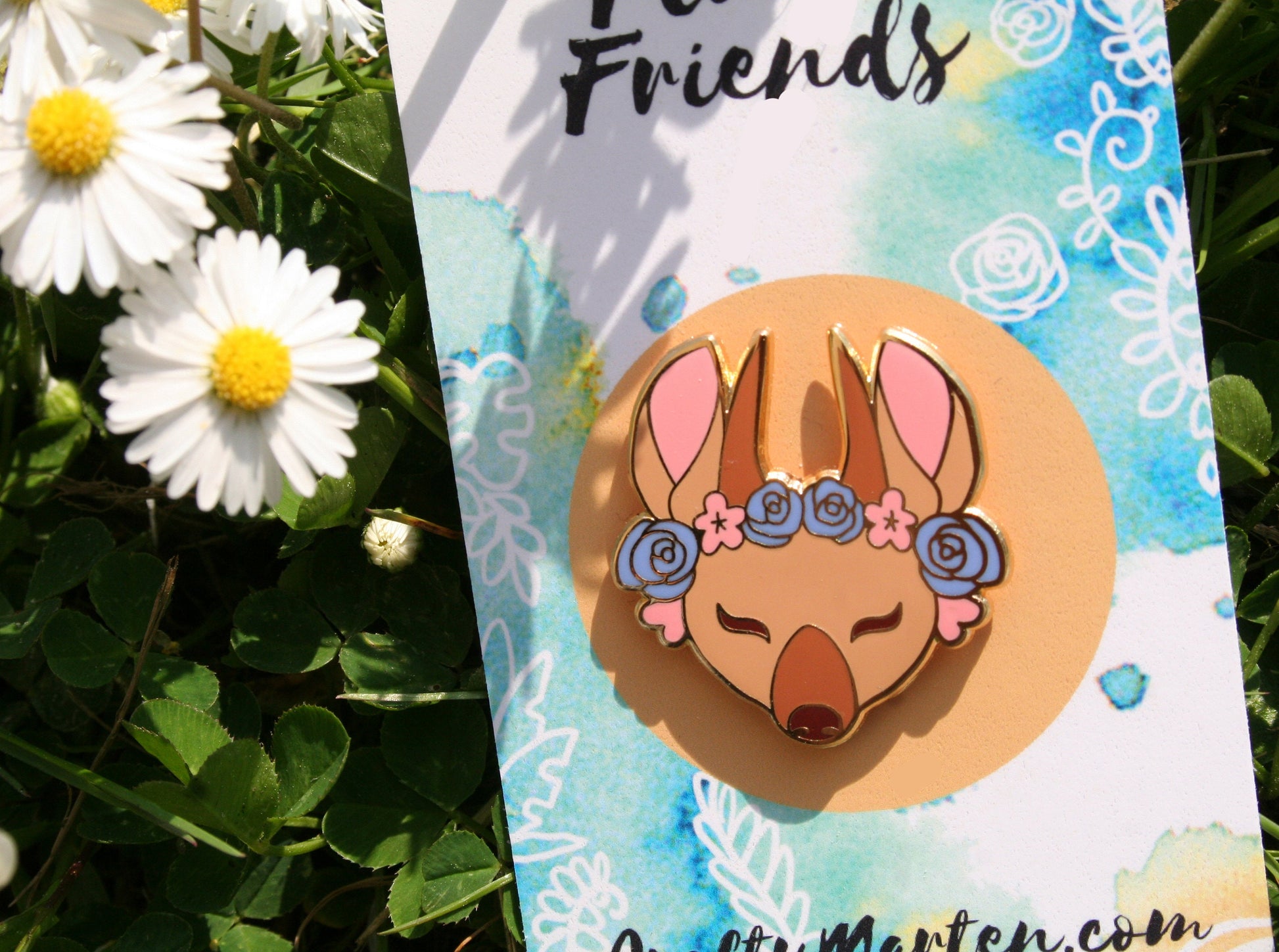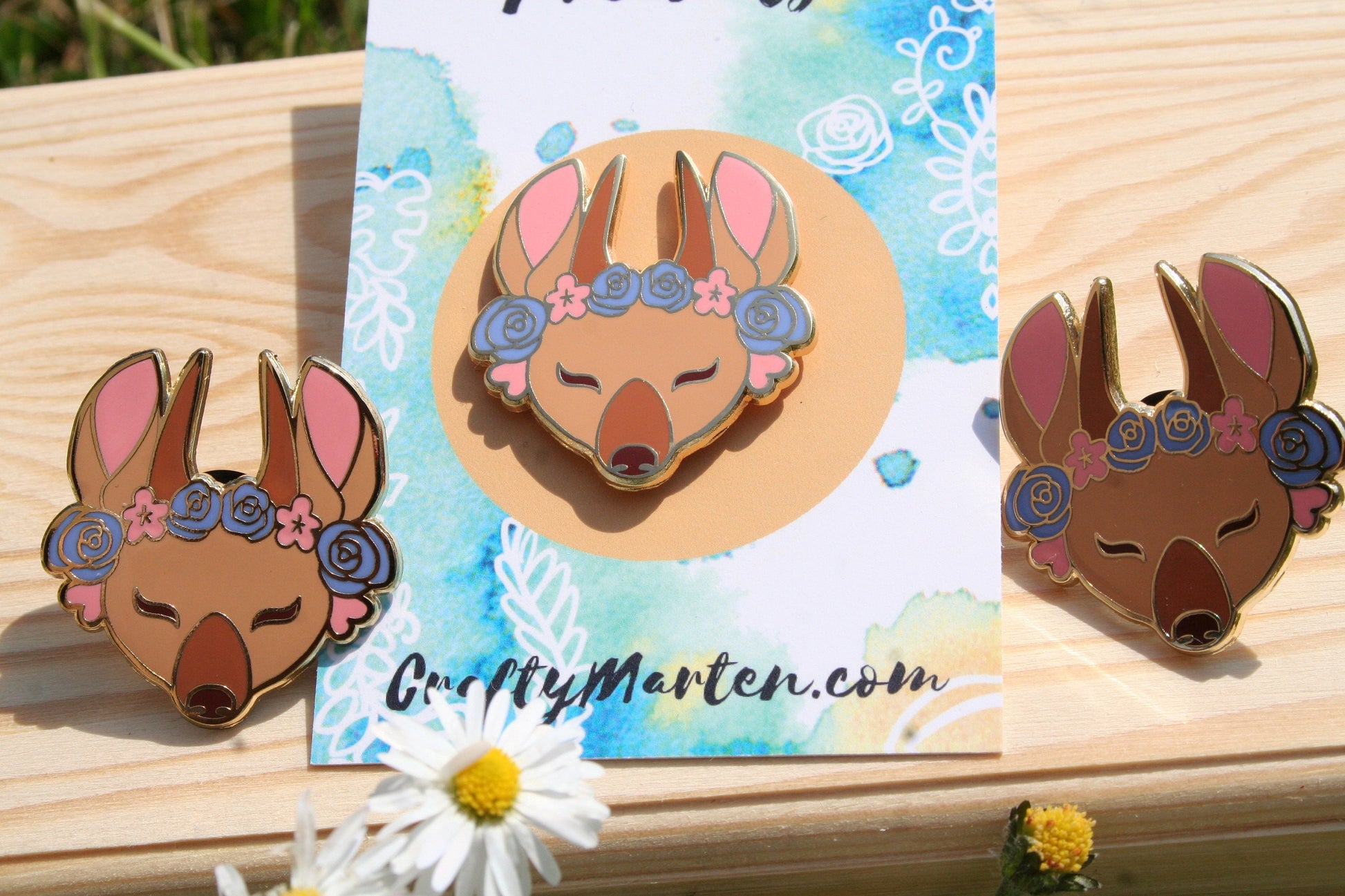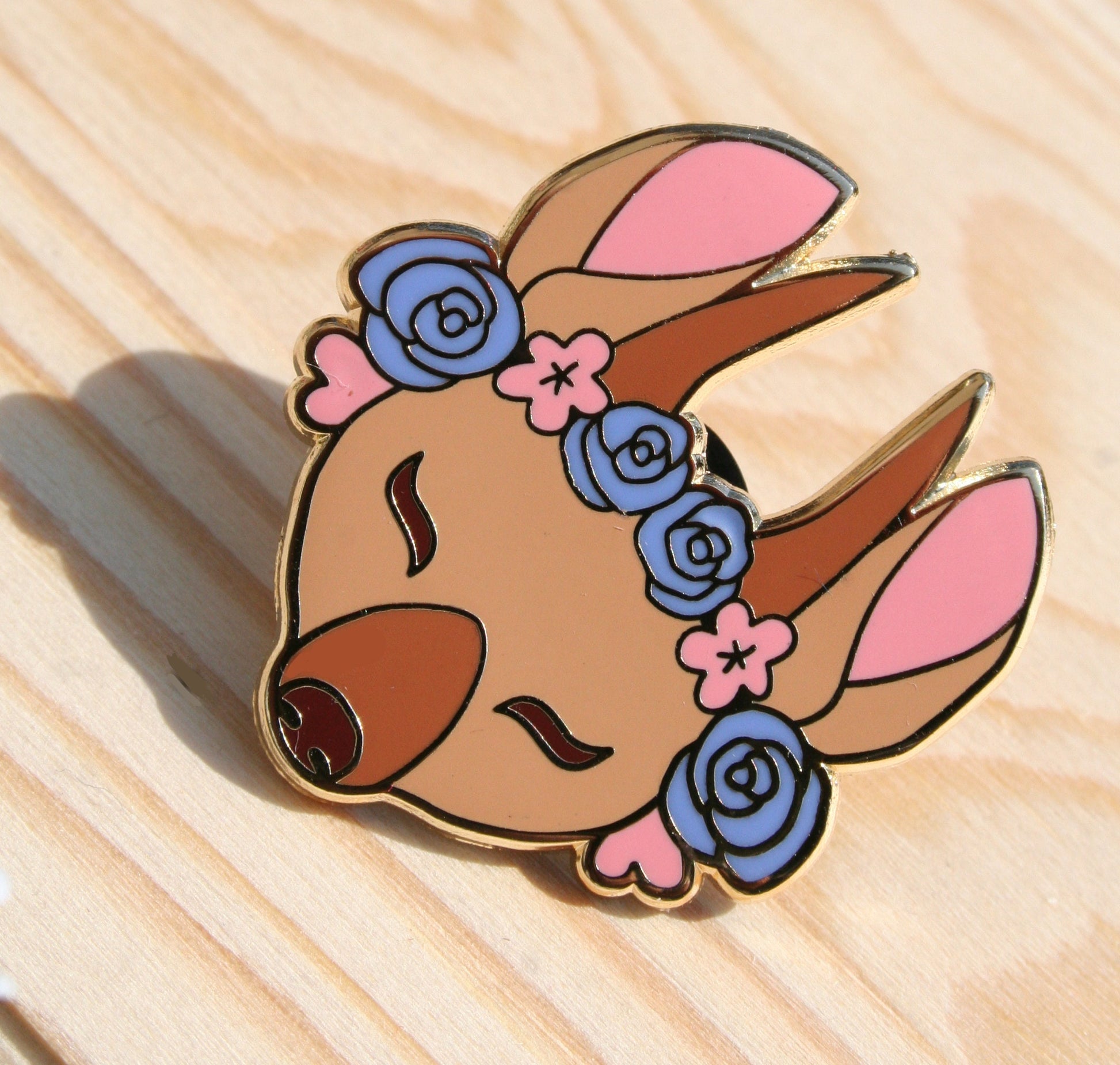 The pin features an adorable deer wearing a delicate crown of flowers.